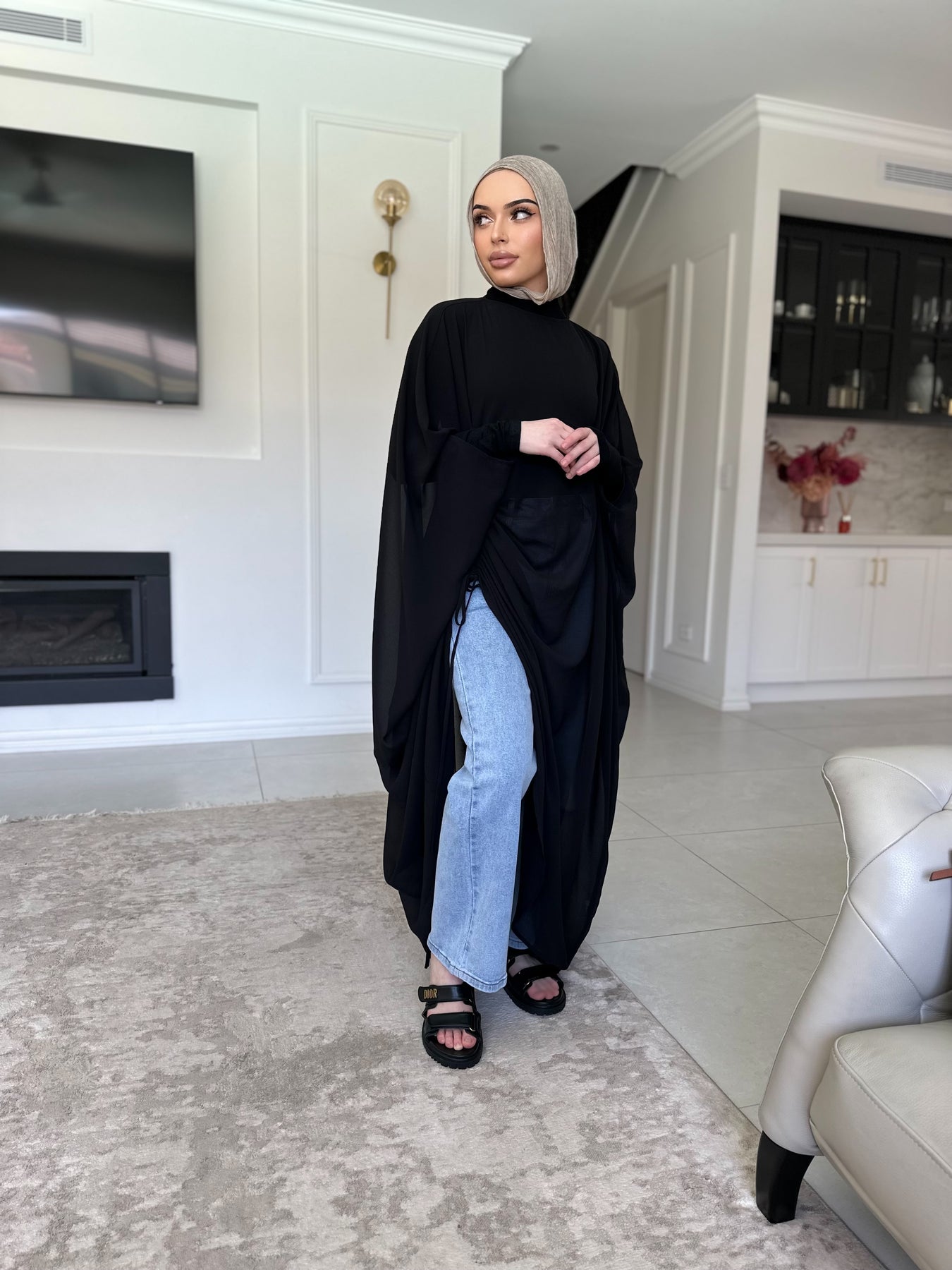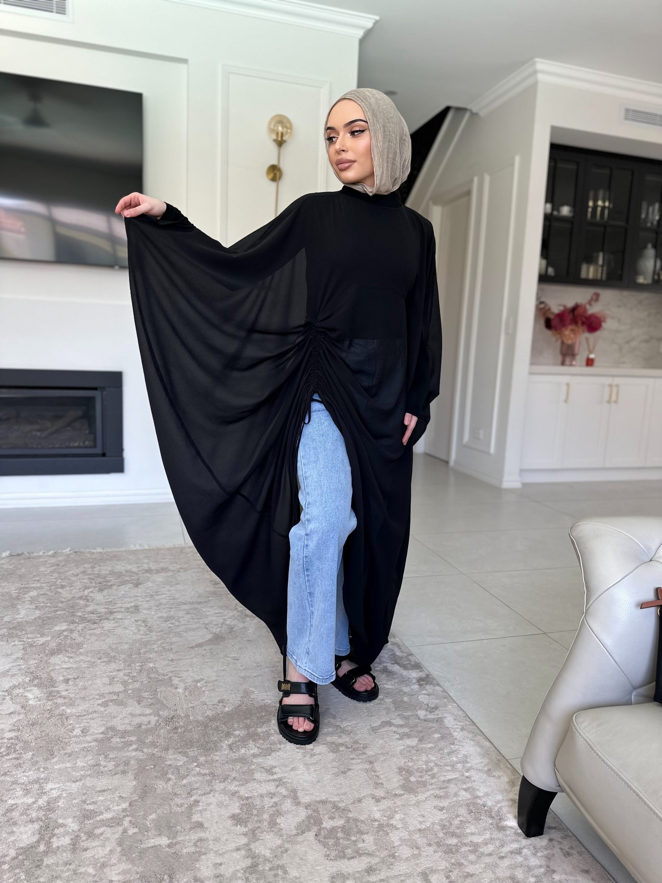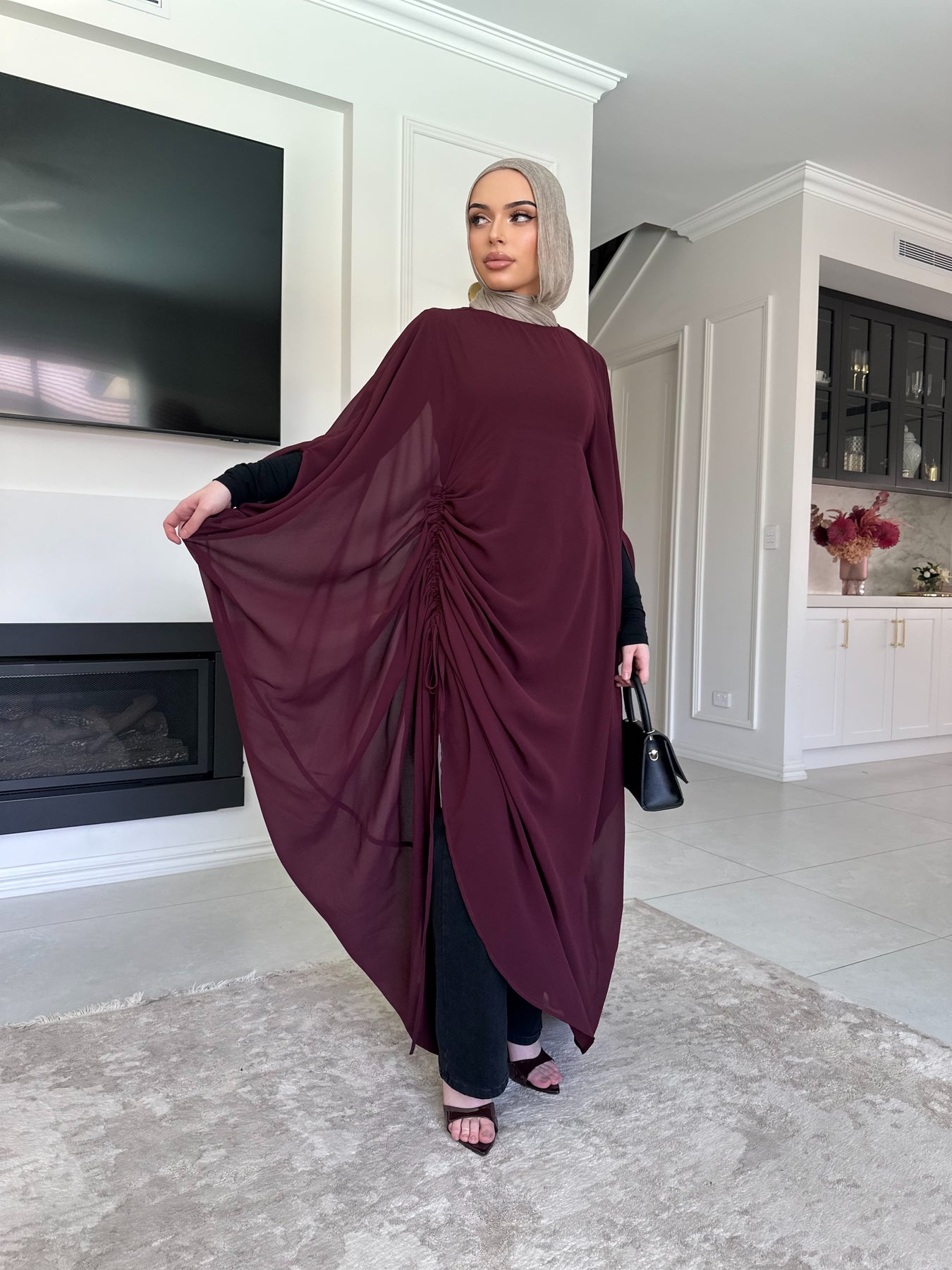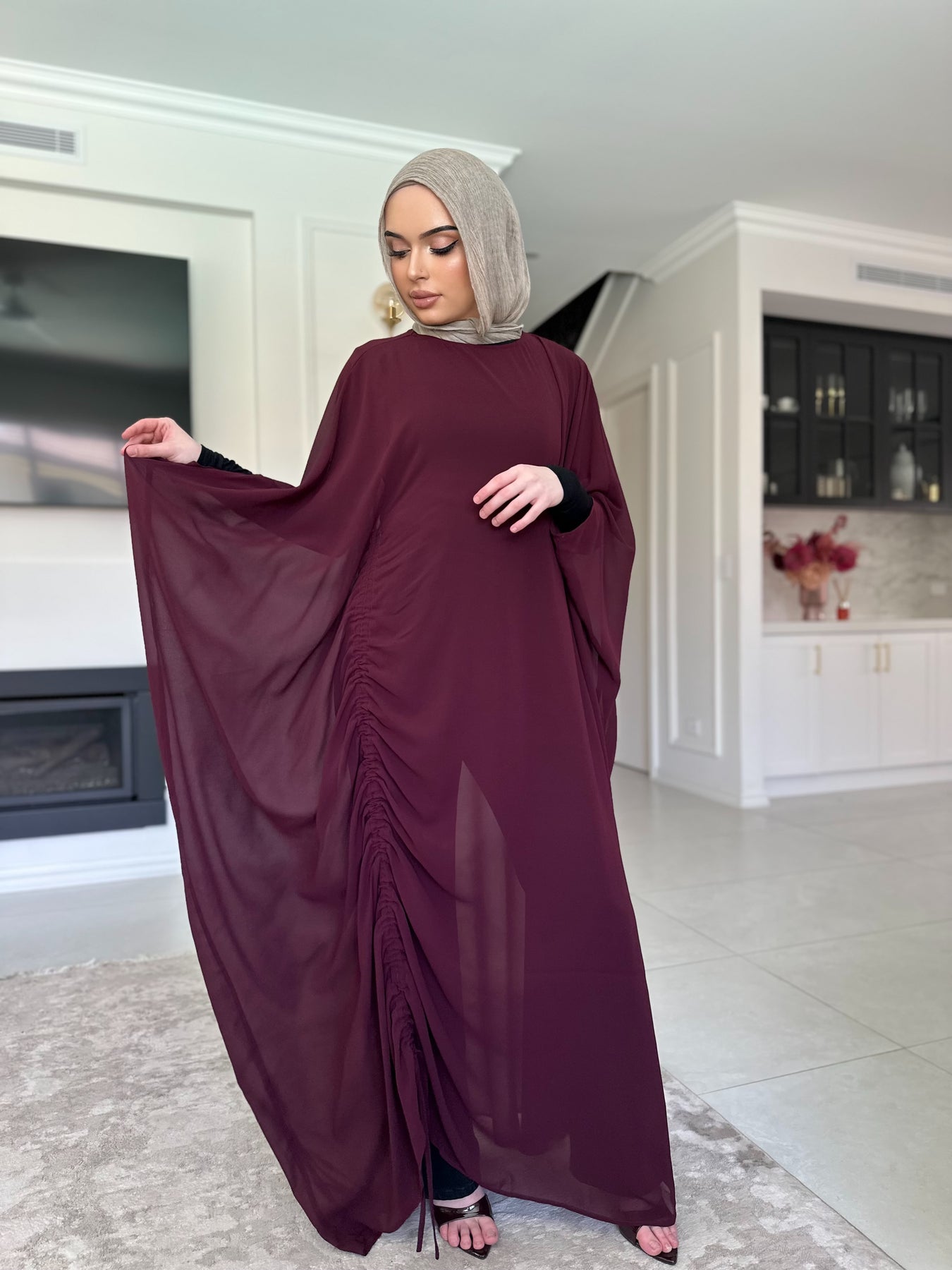 Chiffon kaftan with the tie inside