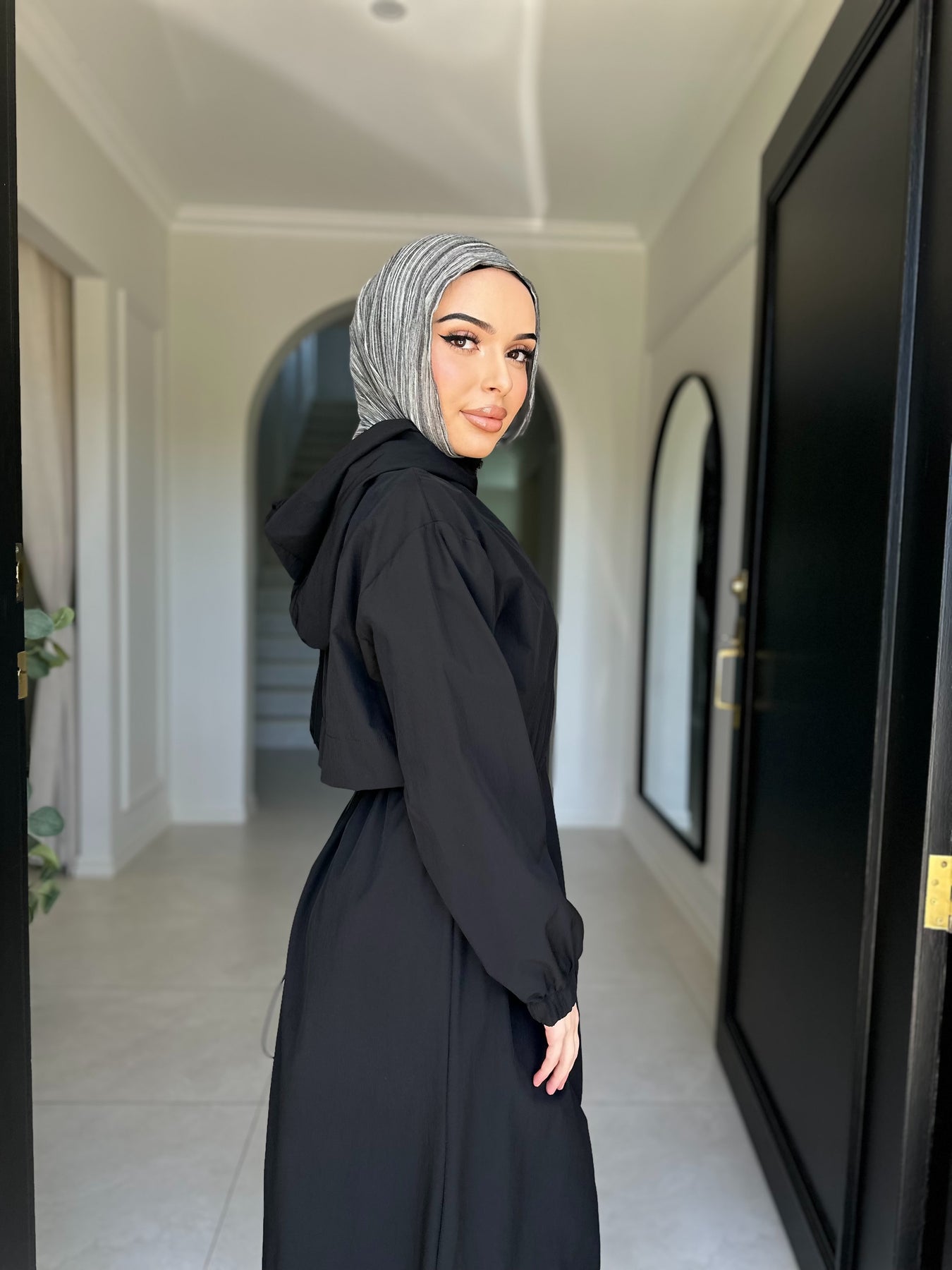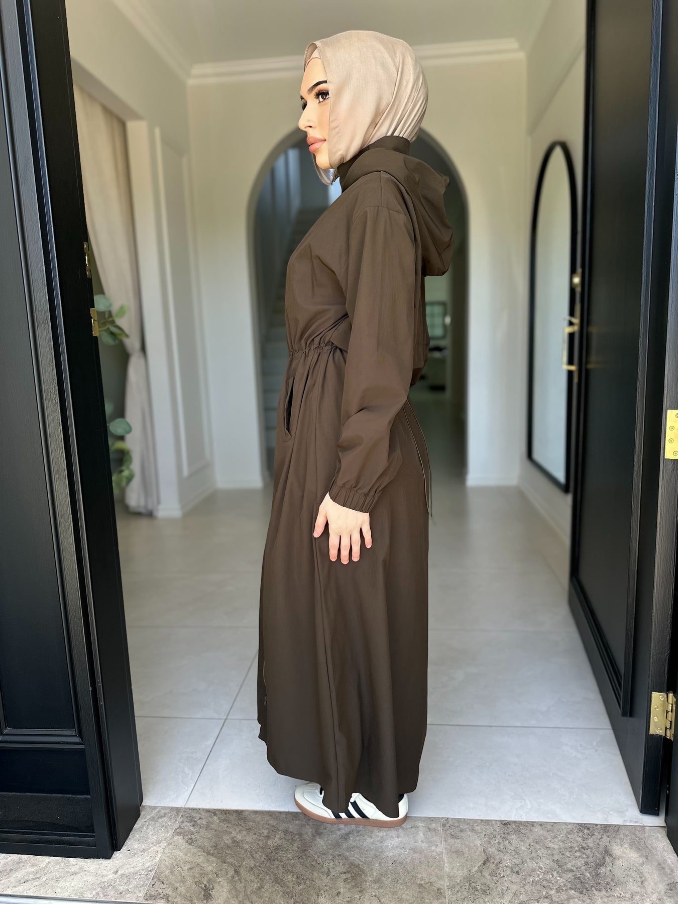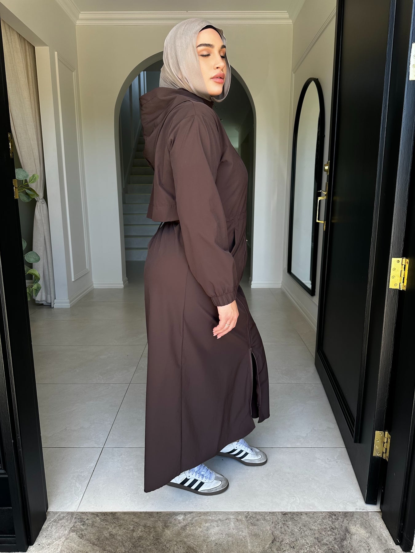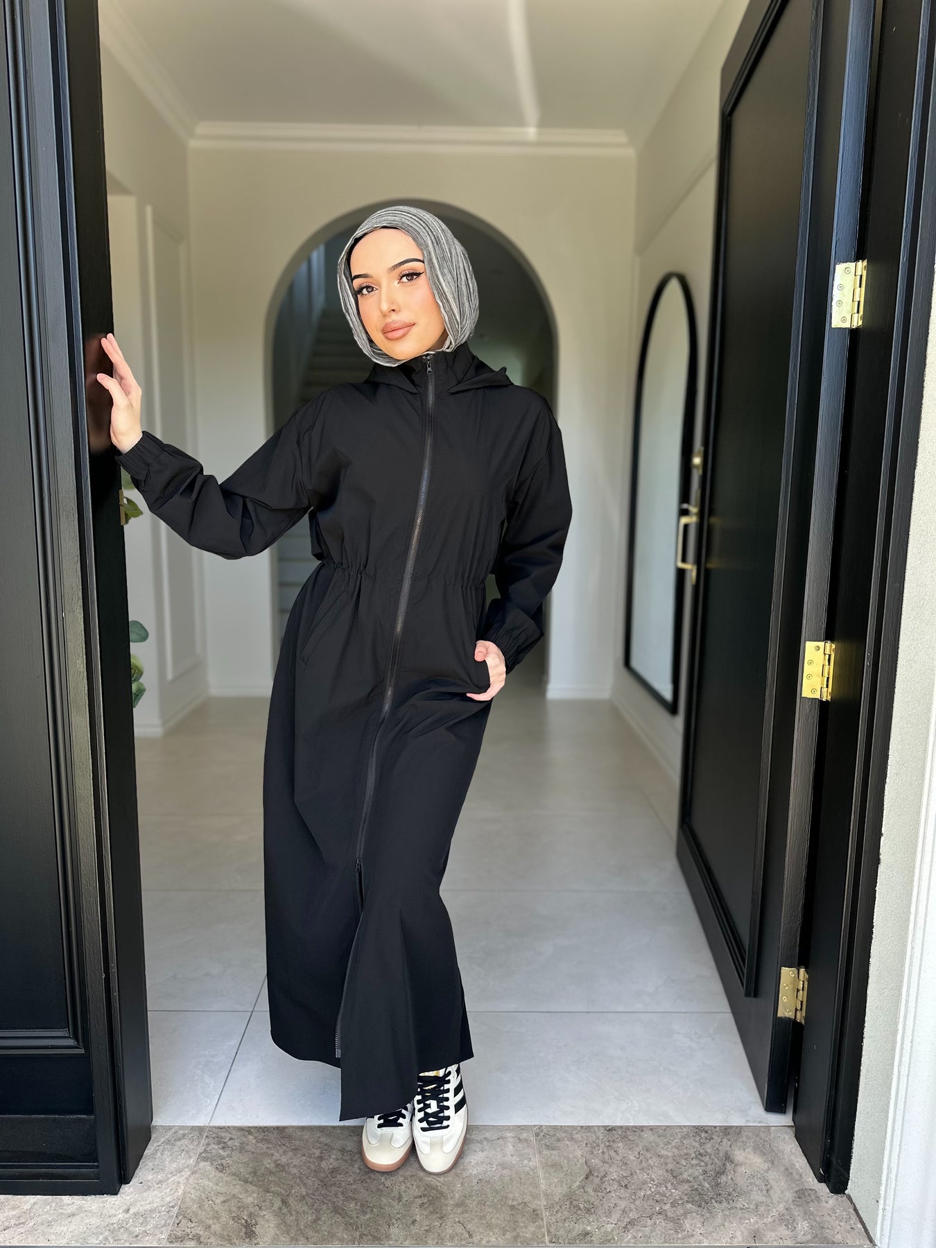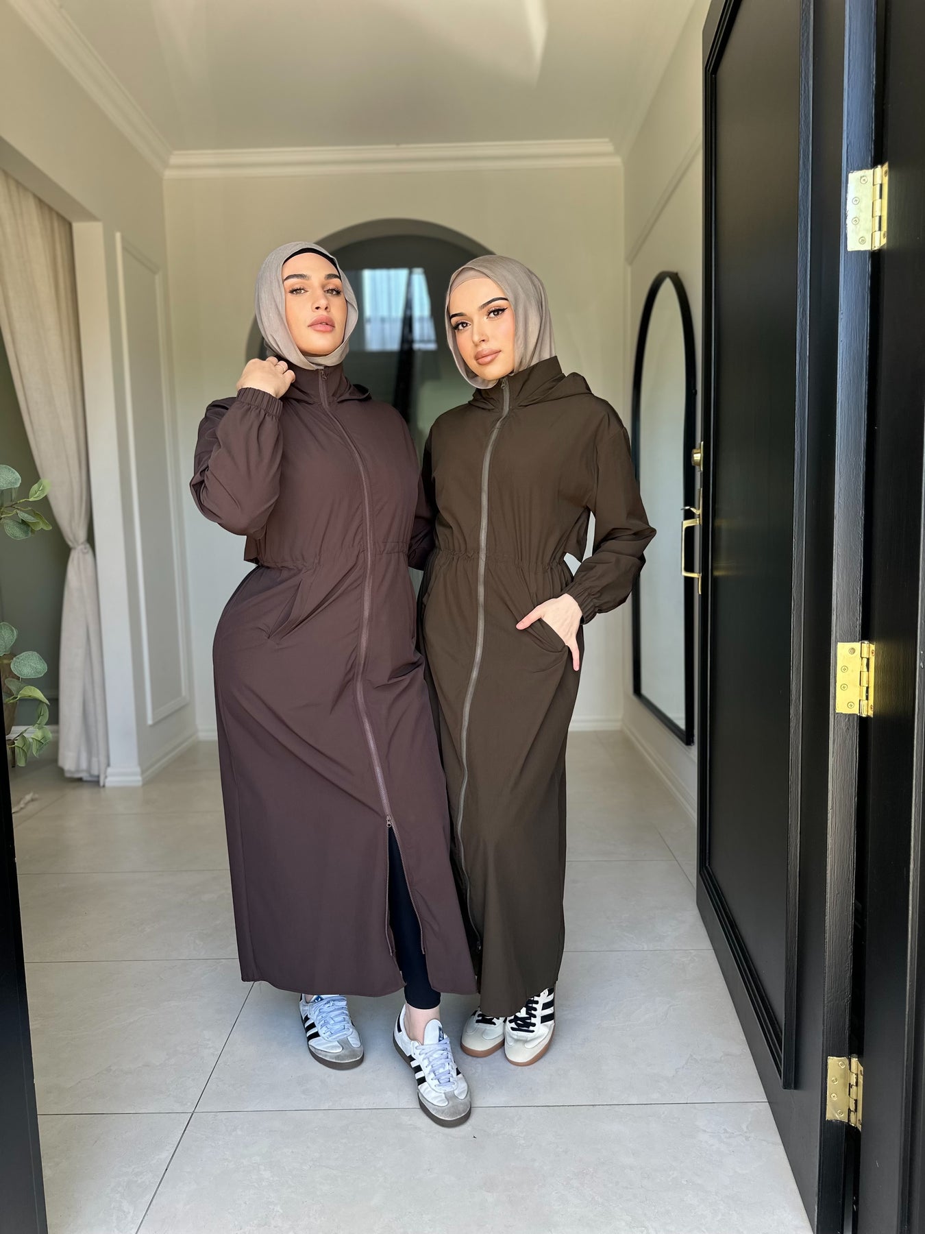 Streatch sport fabric 2 way zip trench with drawstring at back