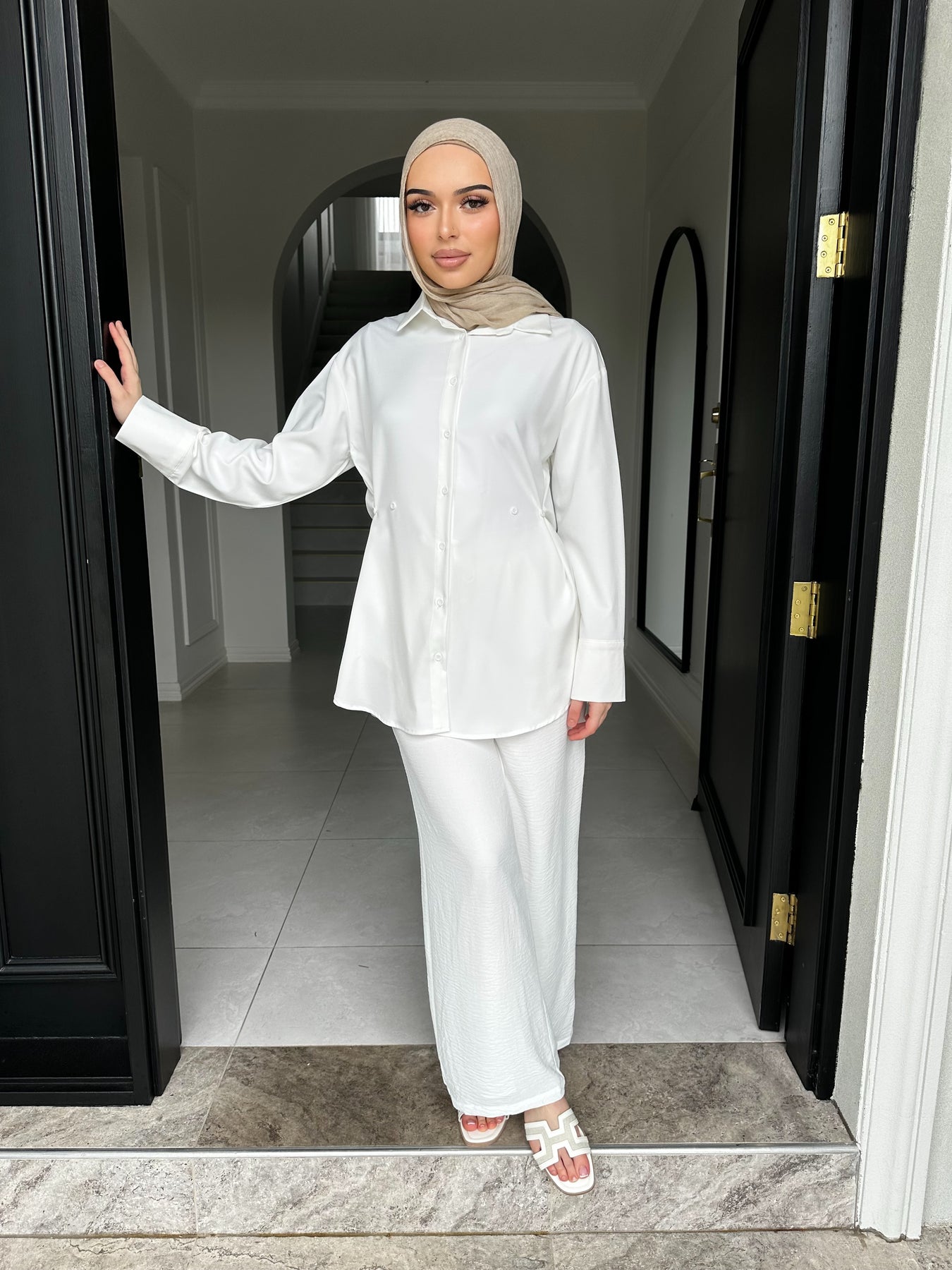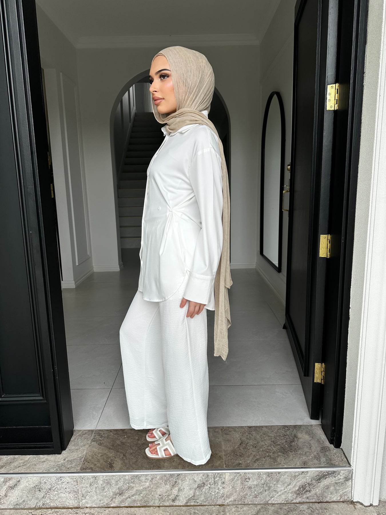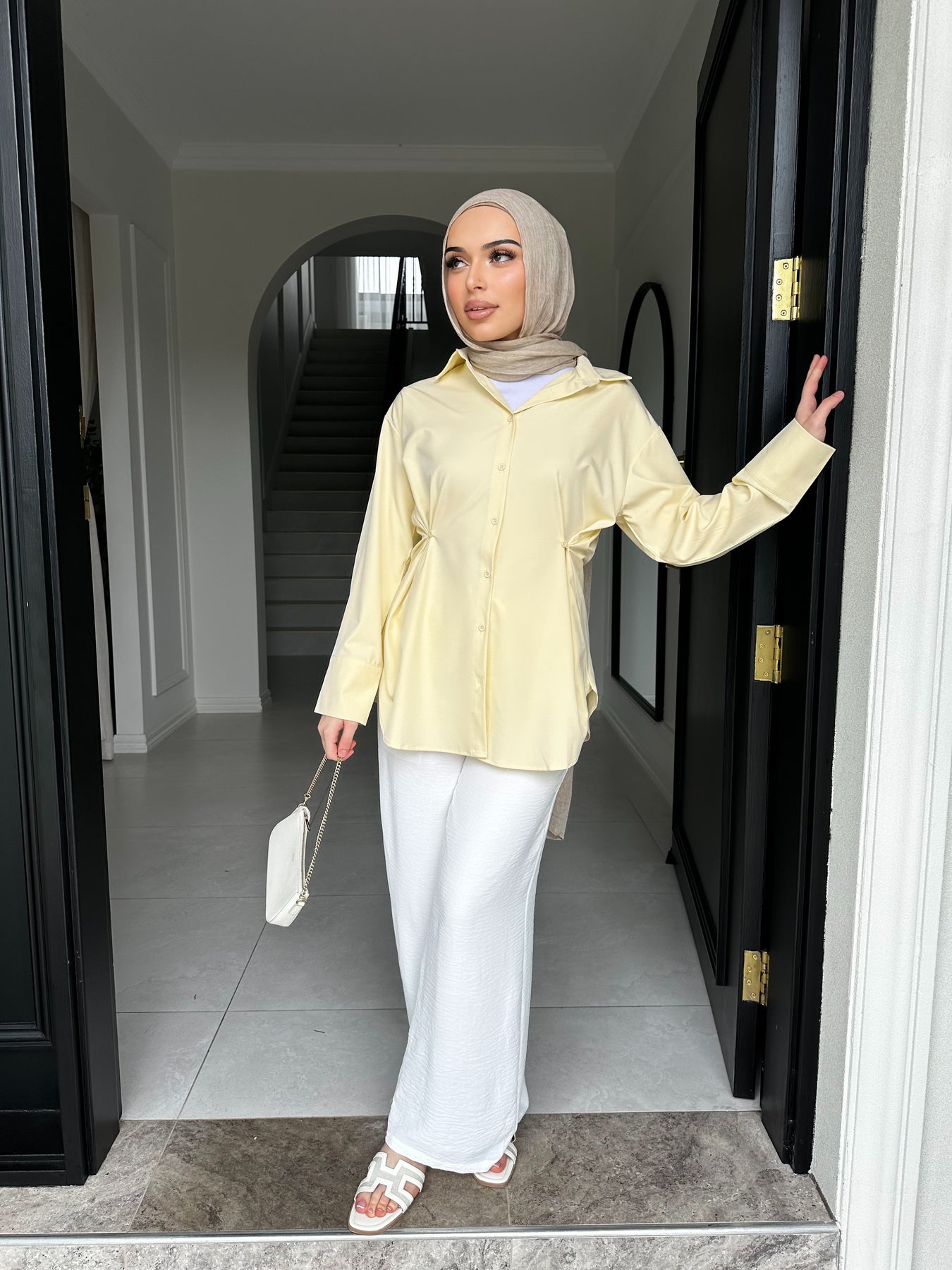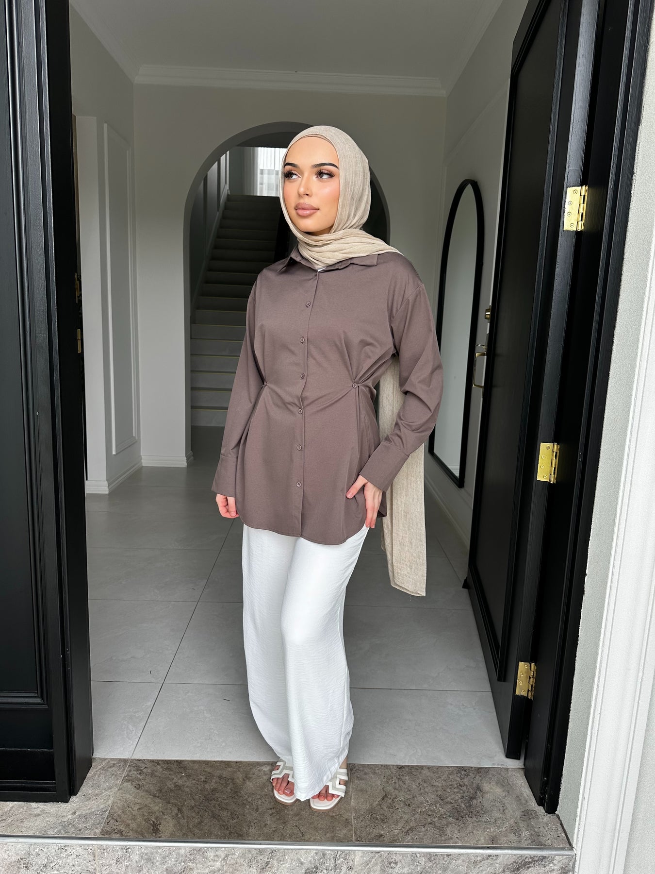 Designed with two adjustable side buttons to cinch the waist as desired, creating a refined silhouette that adapts beautifully to your shape