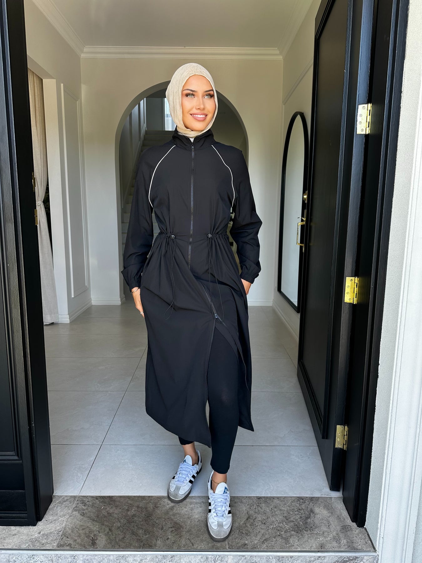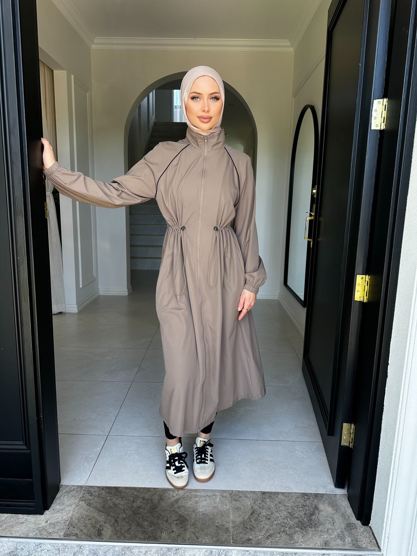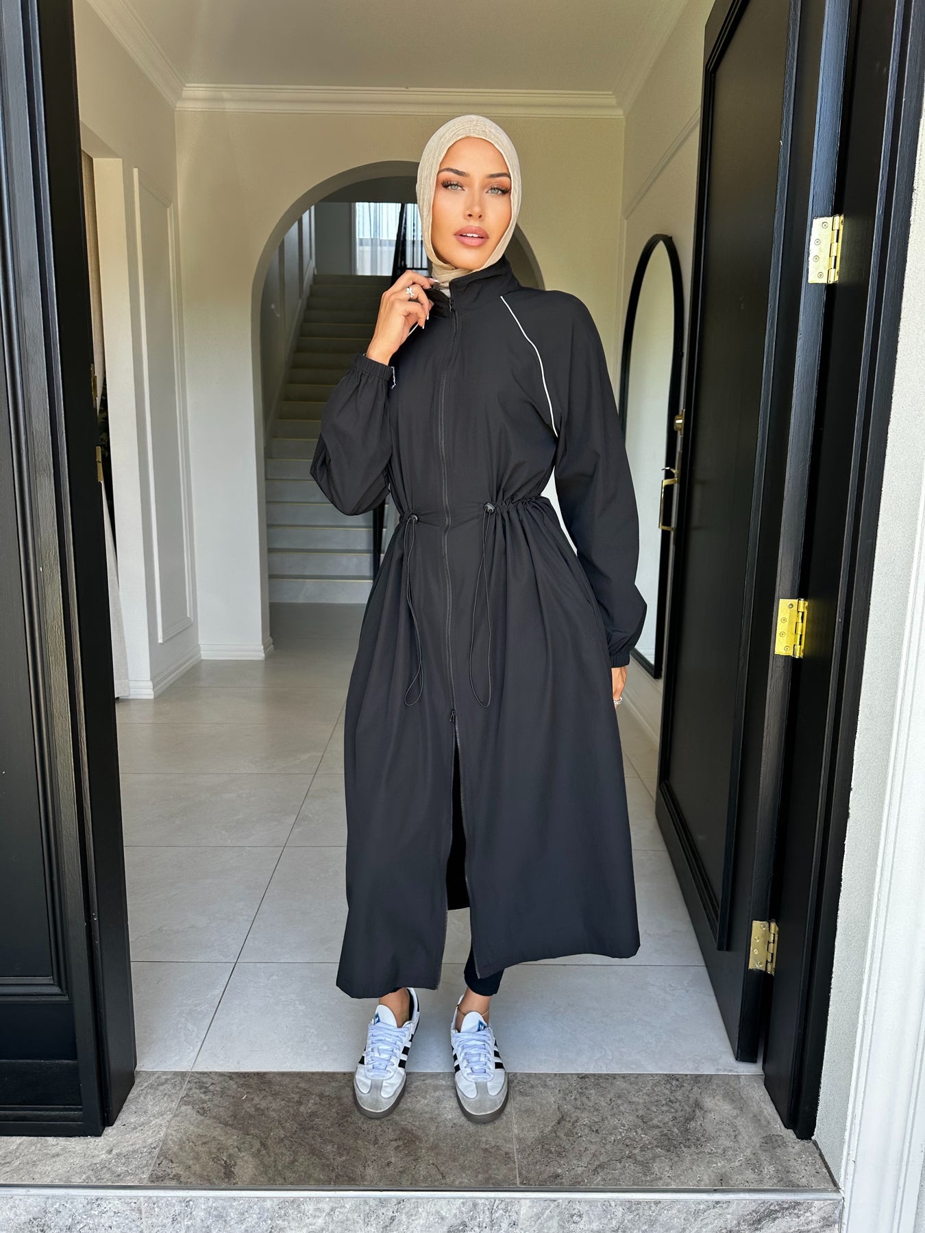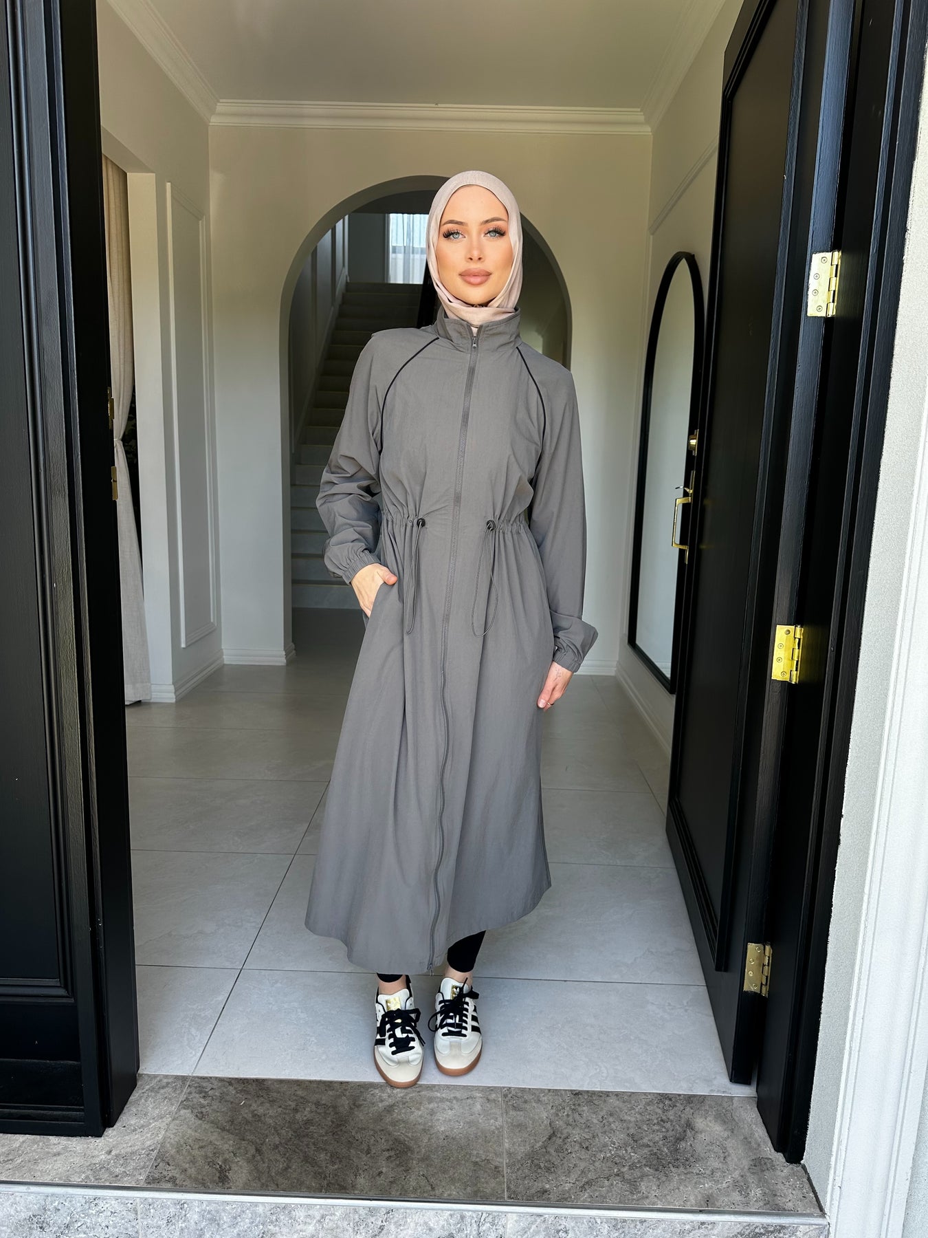 Sport trench 2 way zip with pockets and drawstring at waist