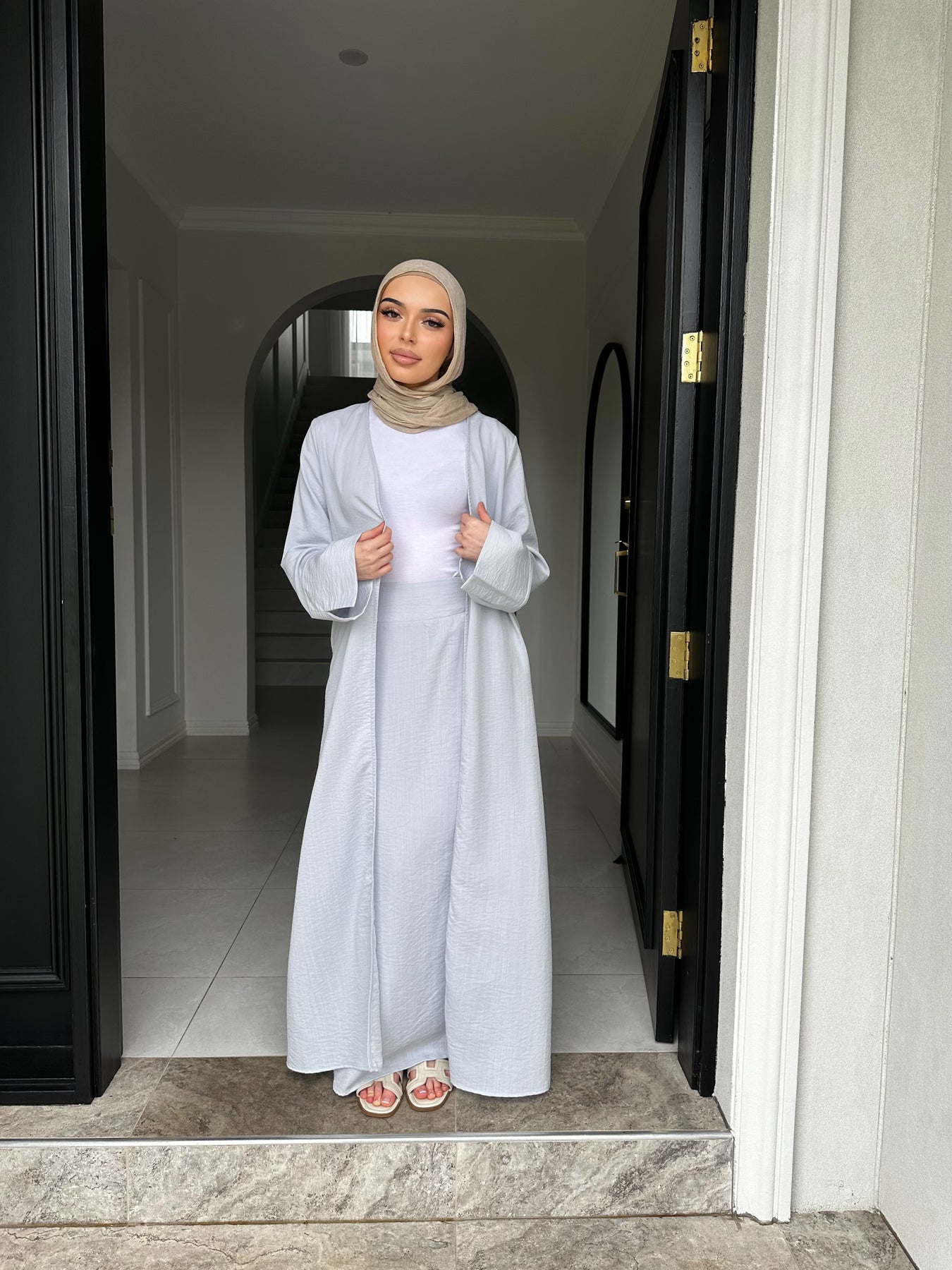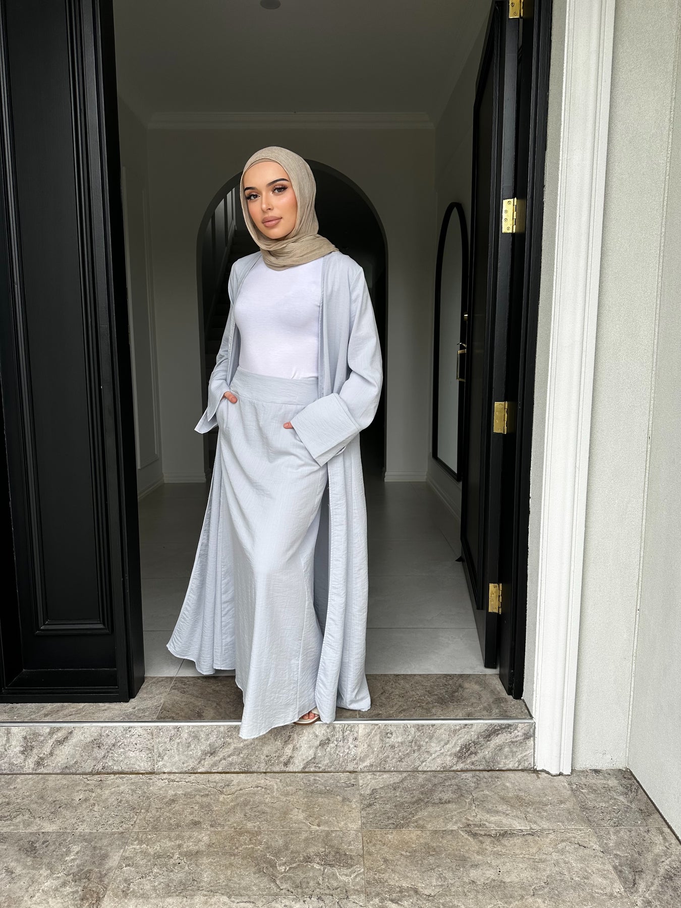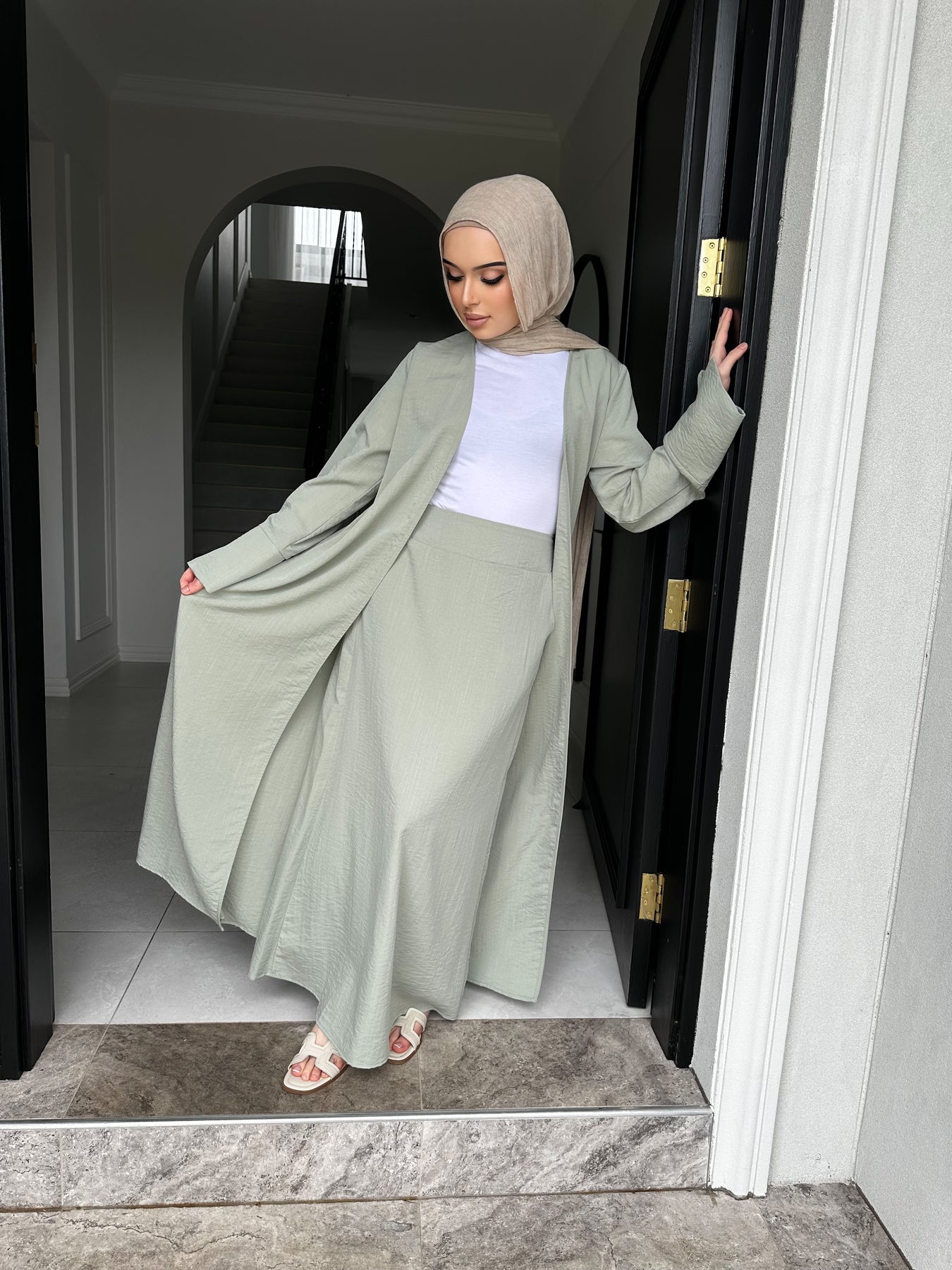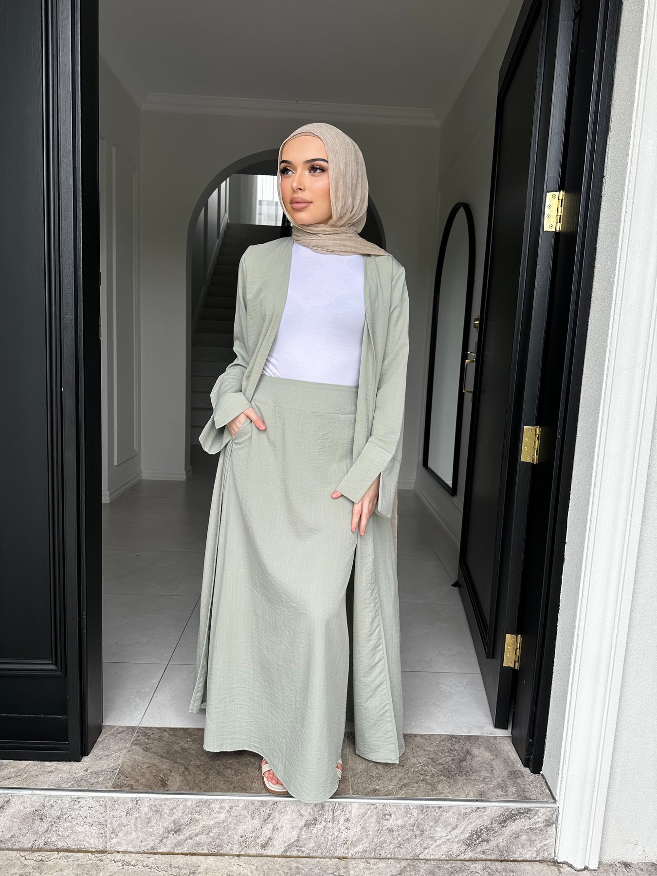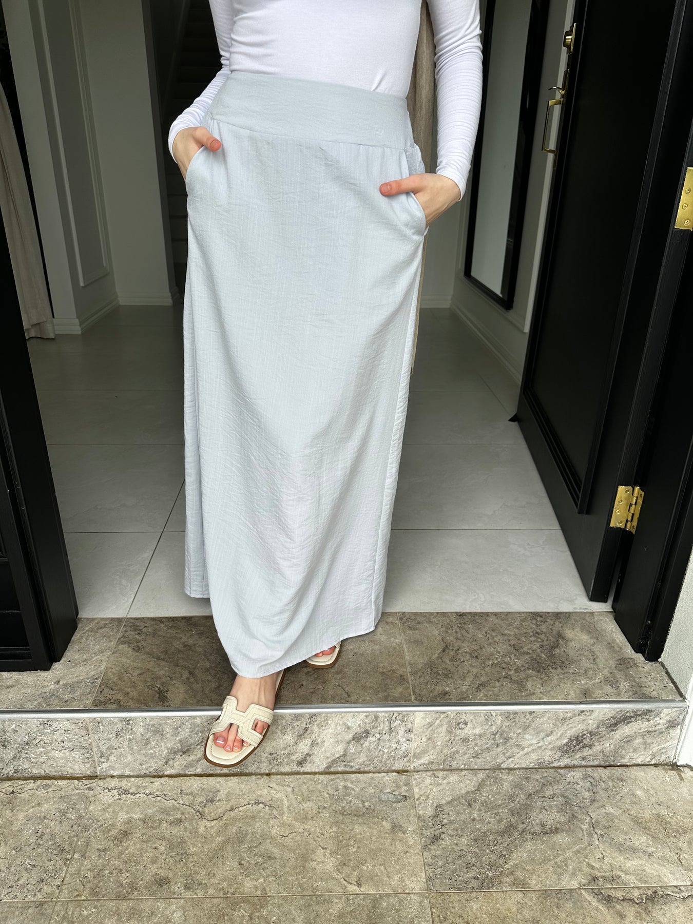 Linen blend non sheer skirt set