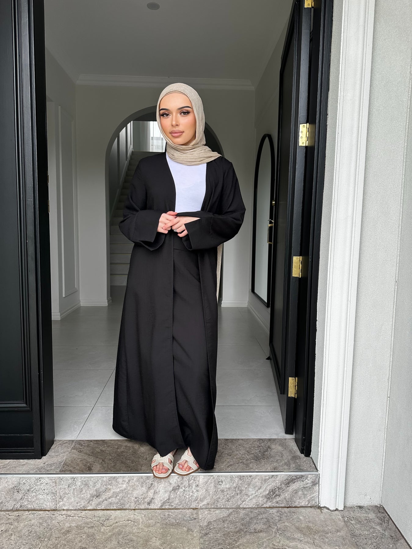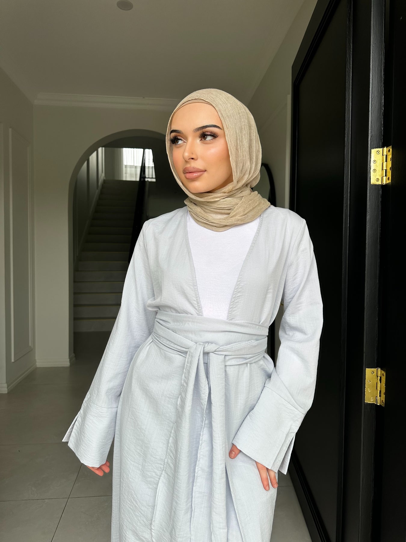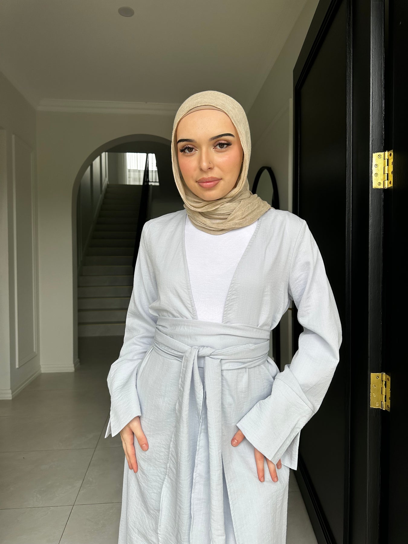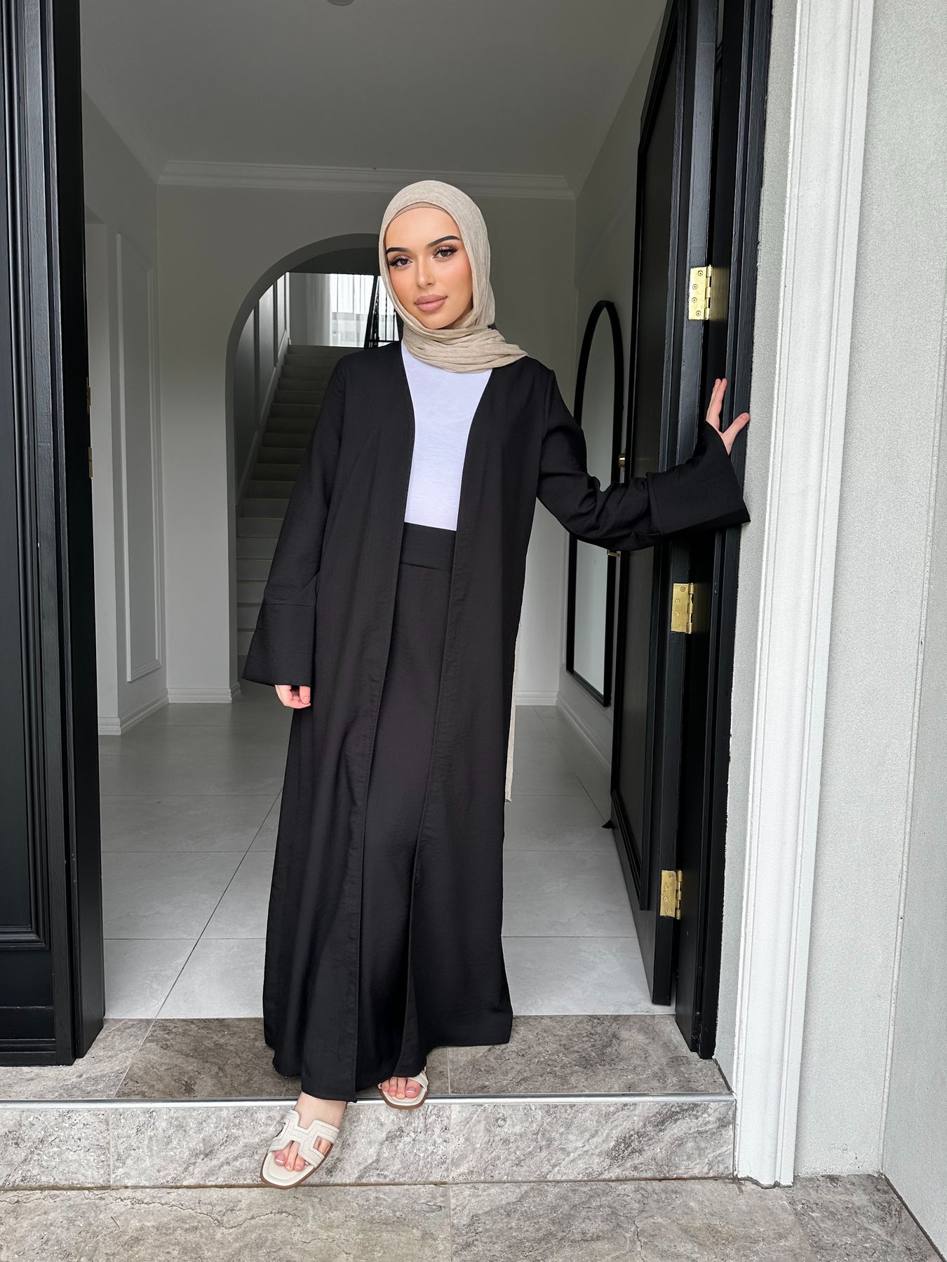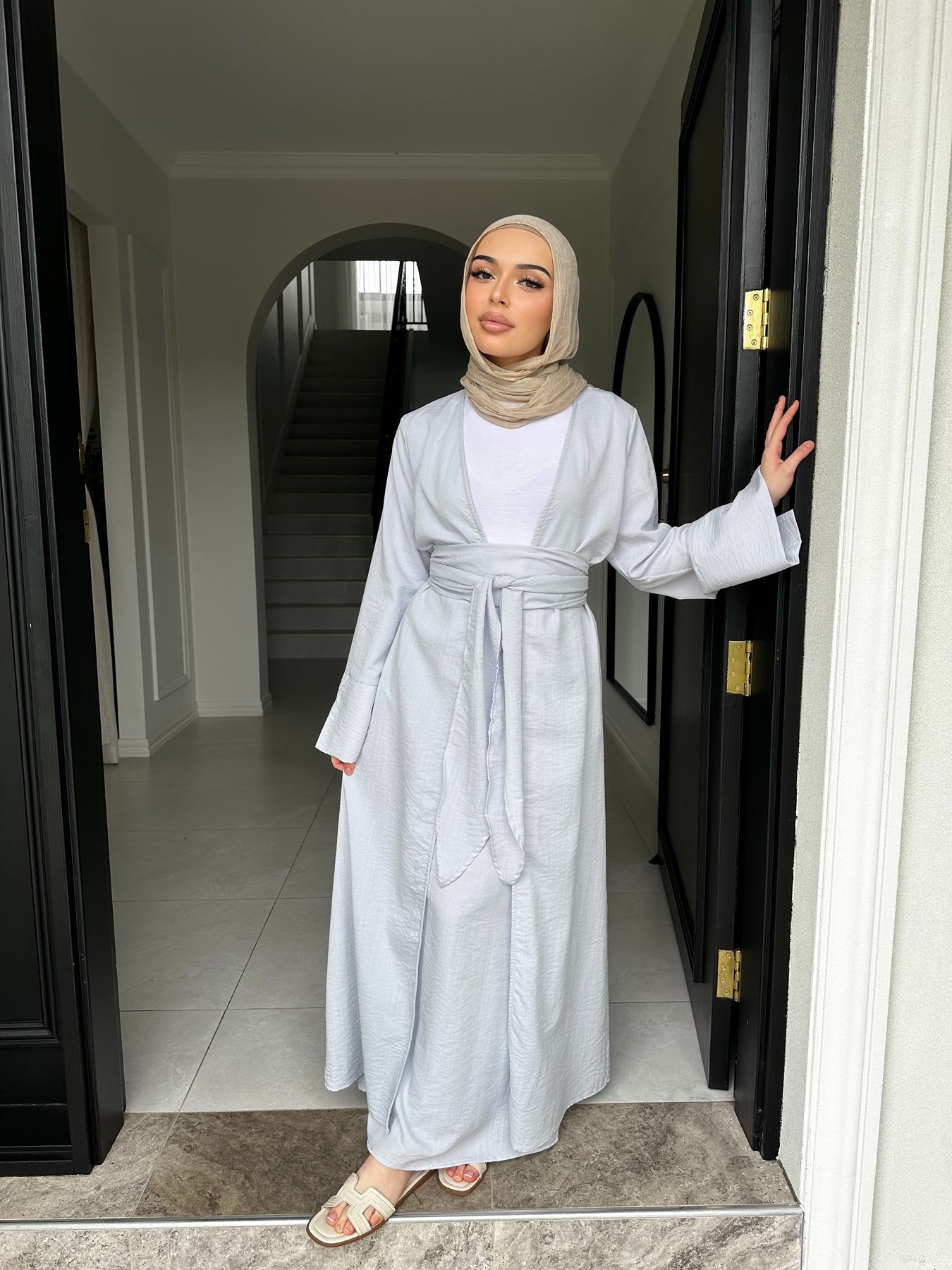 Linen blend non sheer skirt set