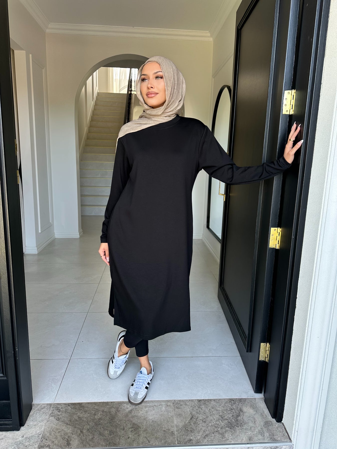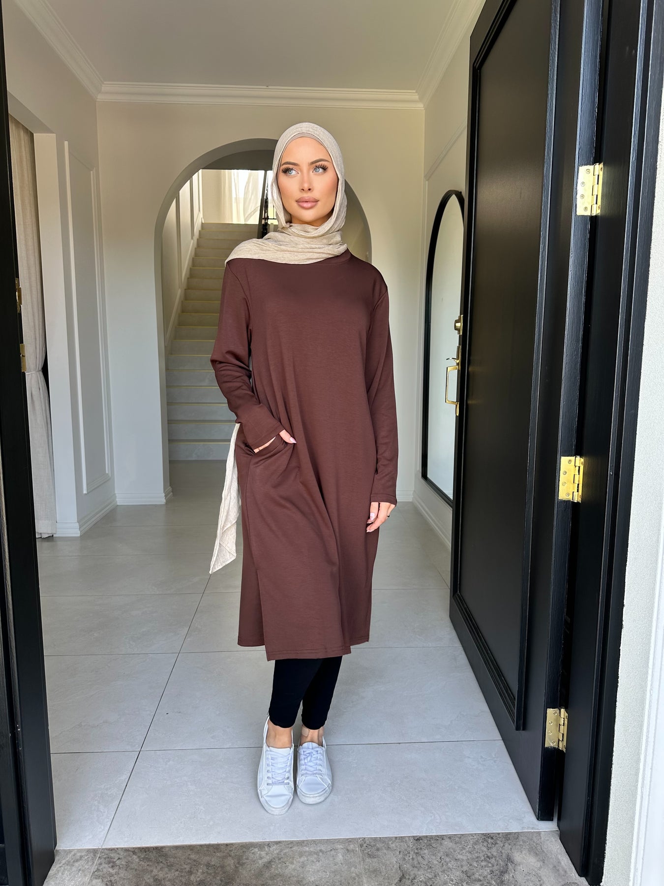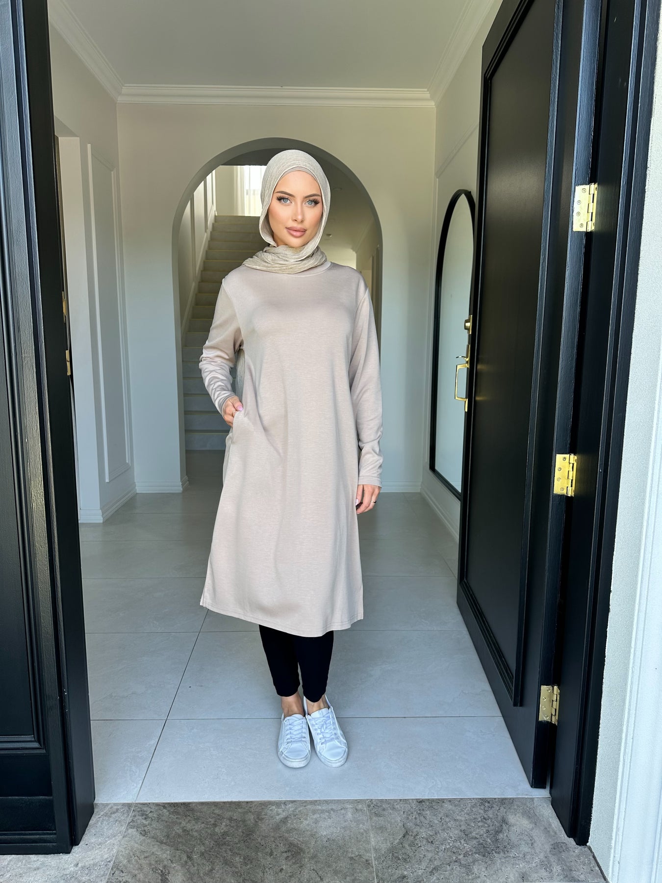 Soft like butter fabric knee length top with pockets model wears size small
