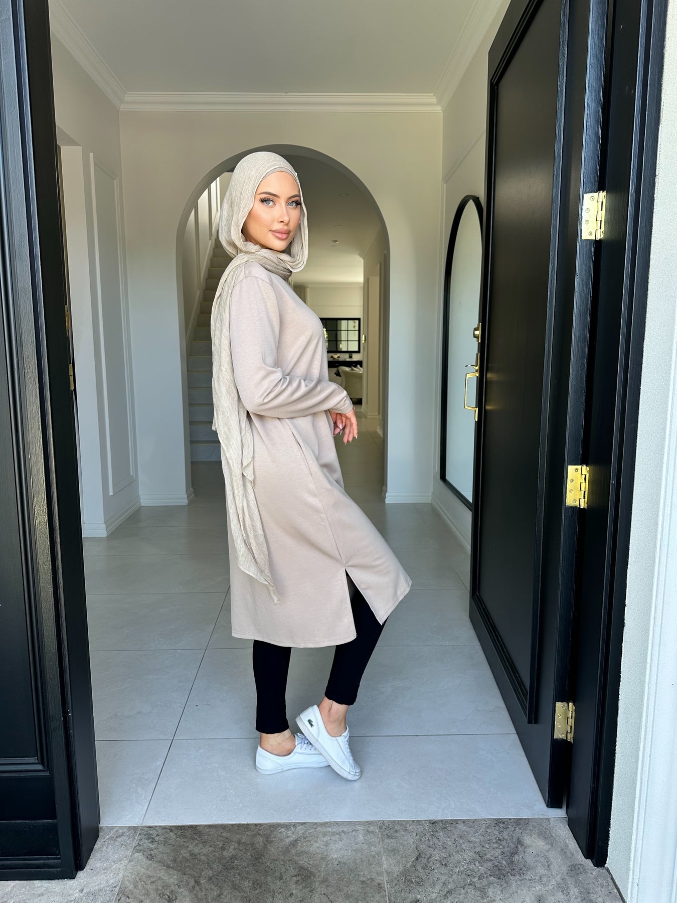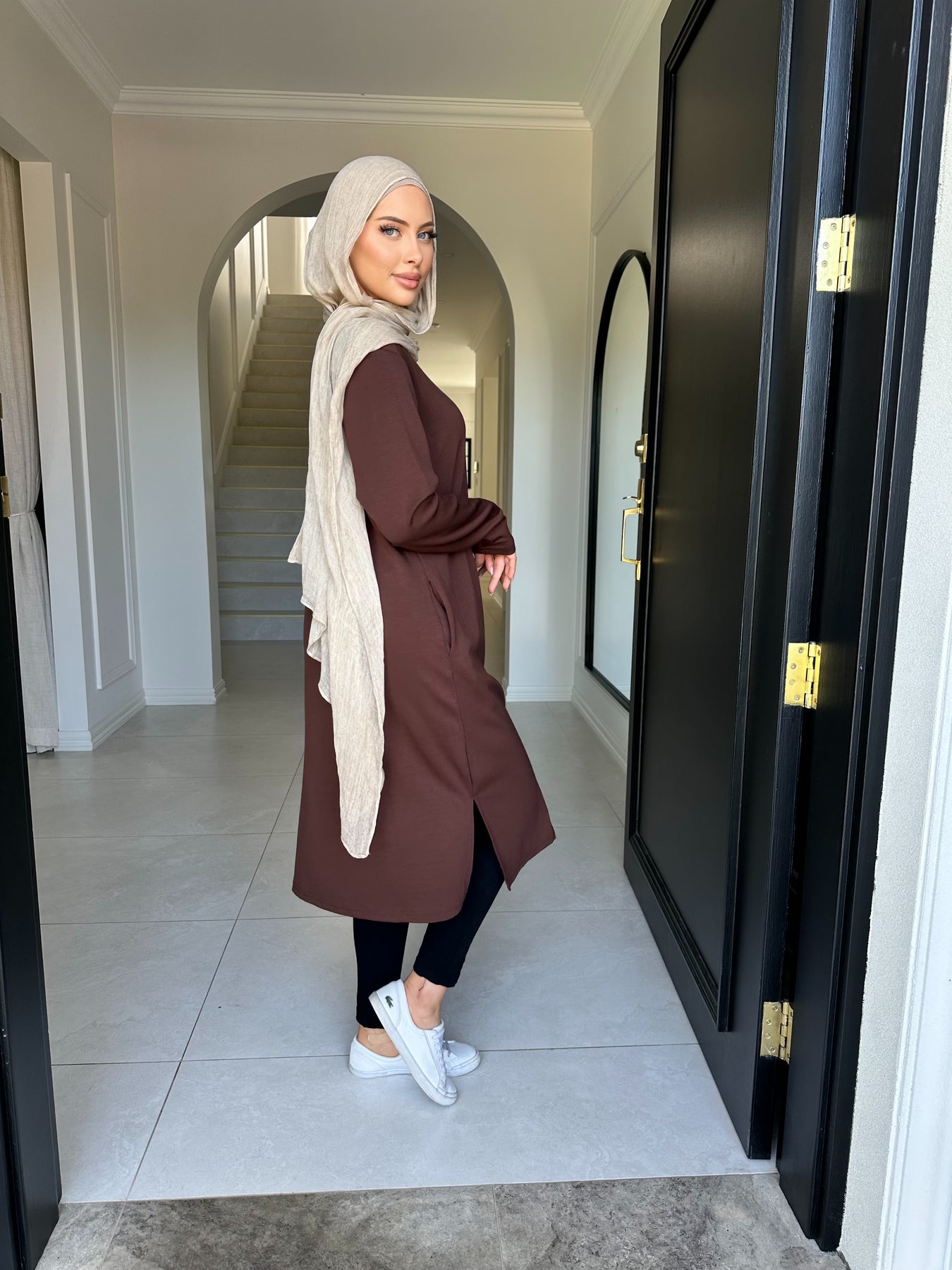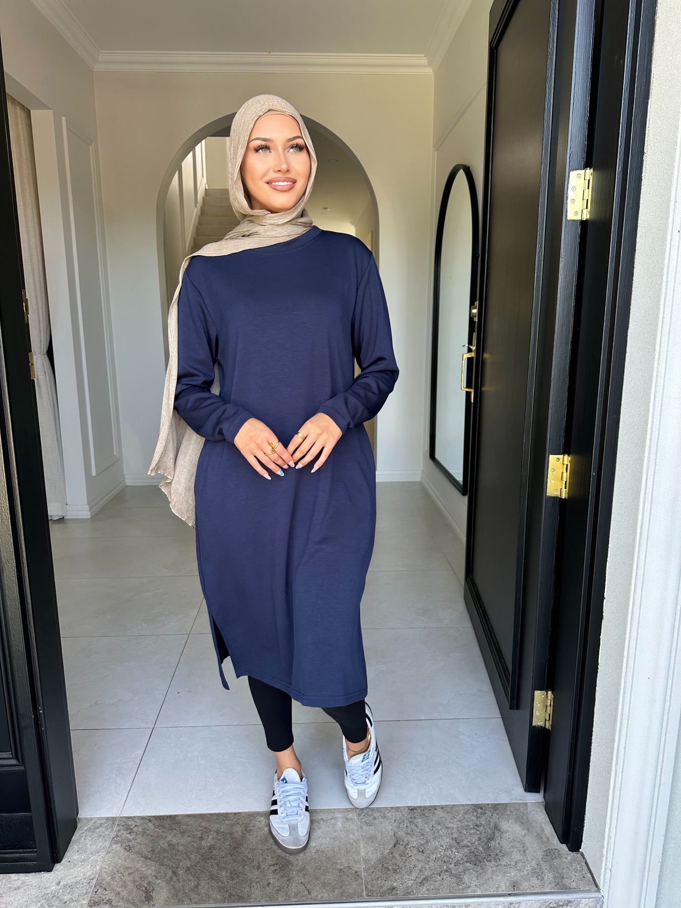 Soft like butter fabric knee length top with pockets model wears size small