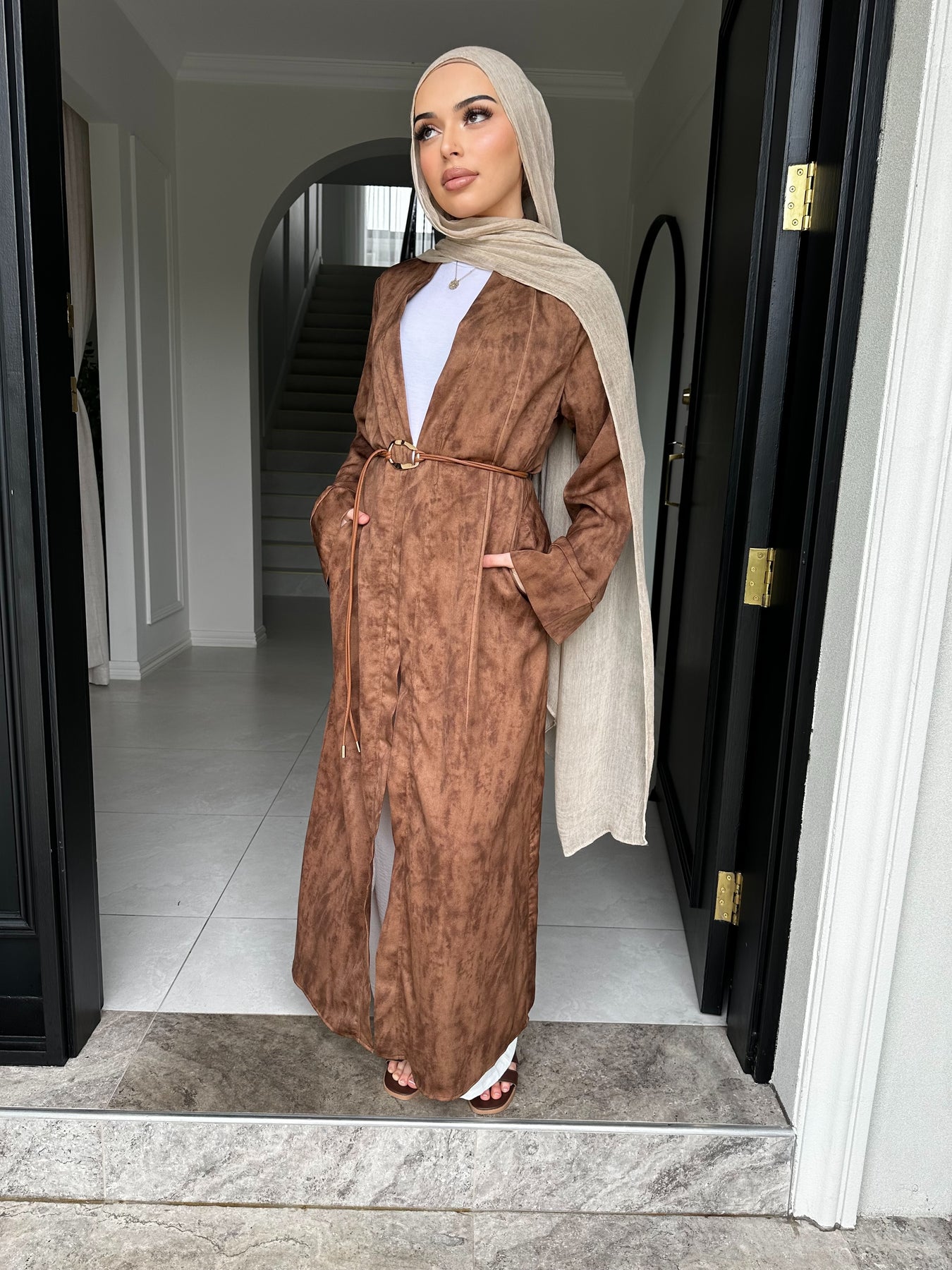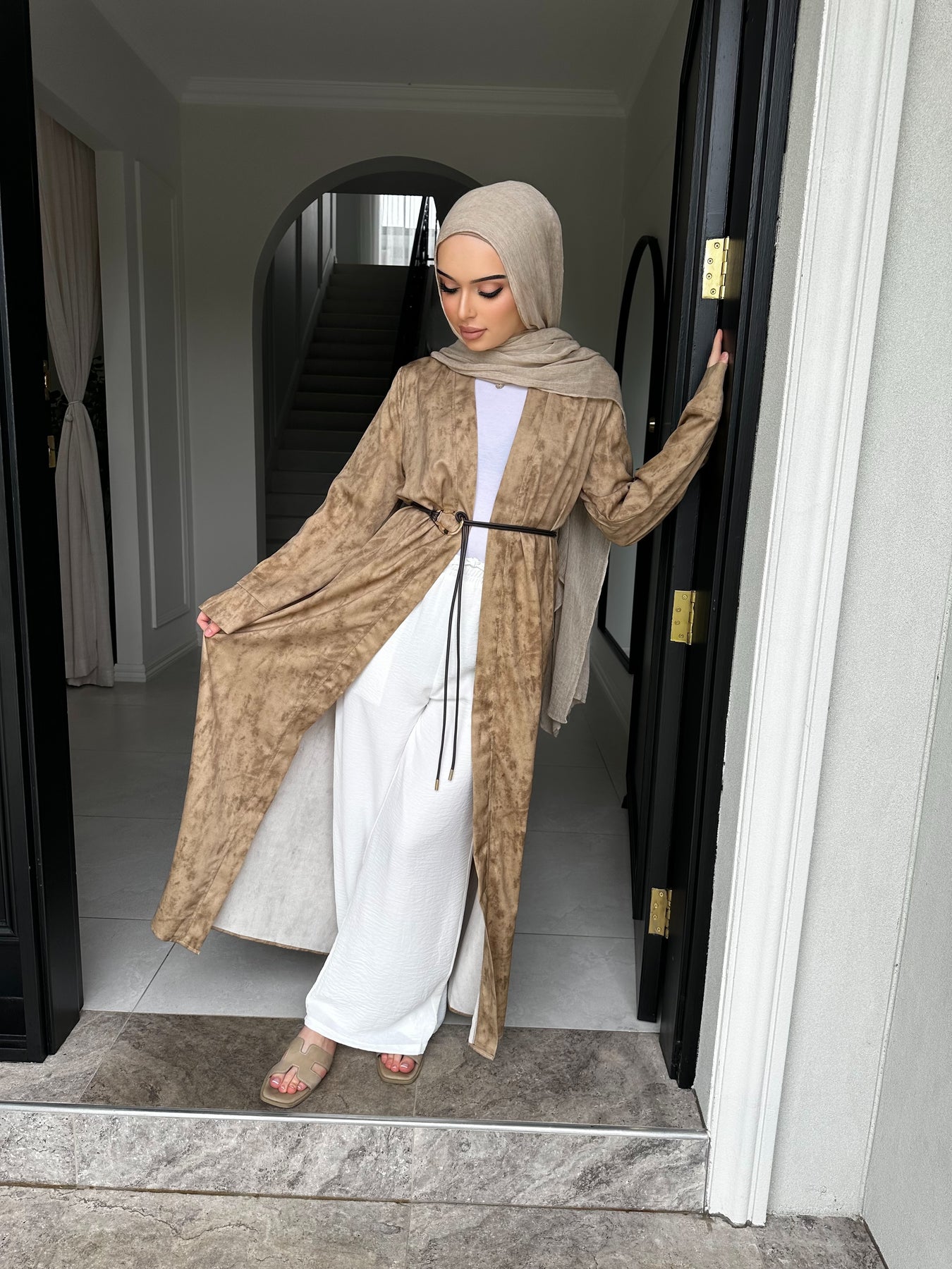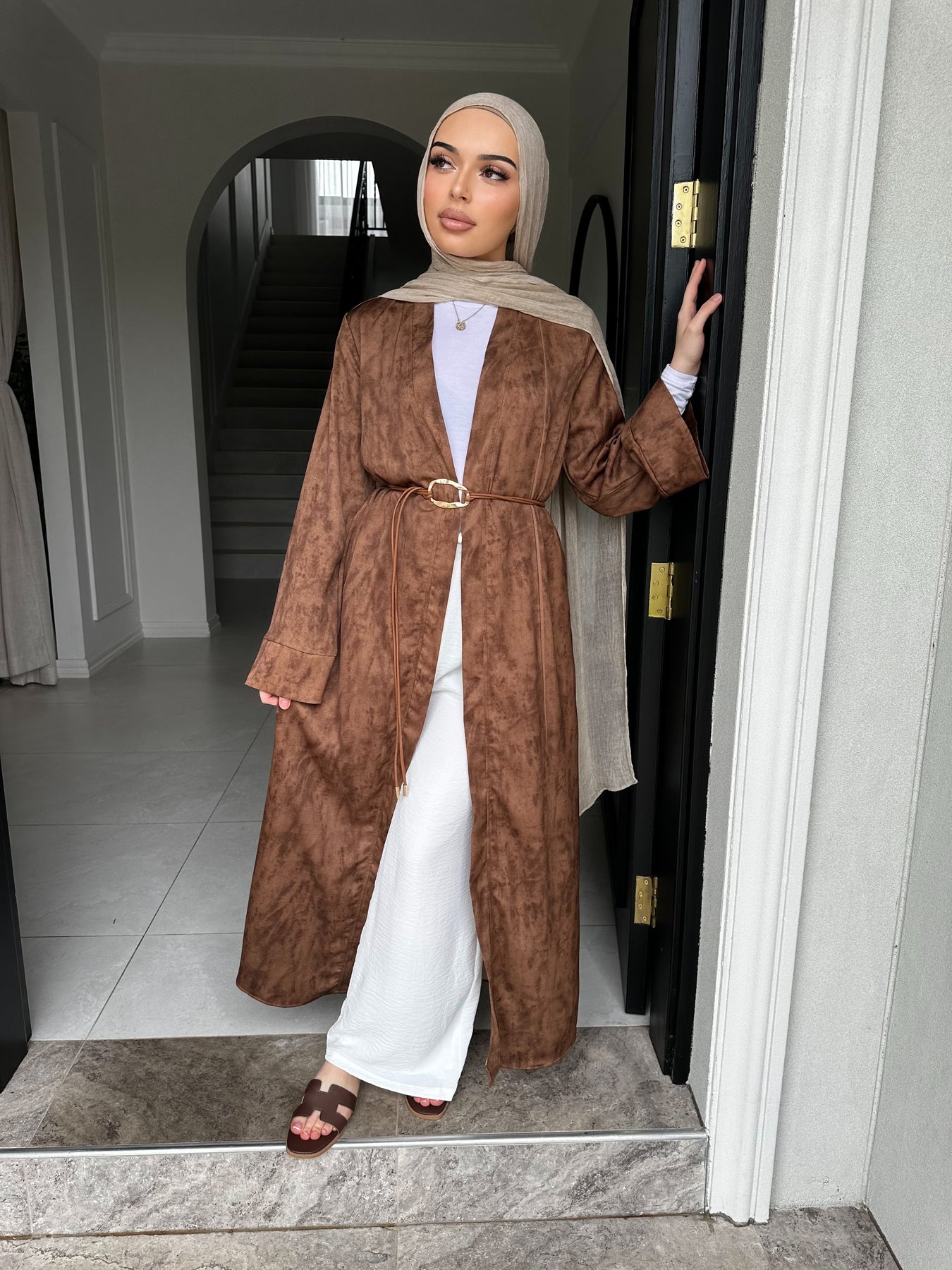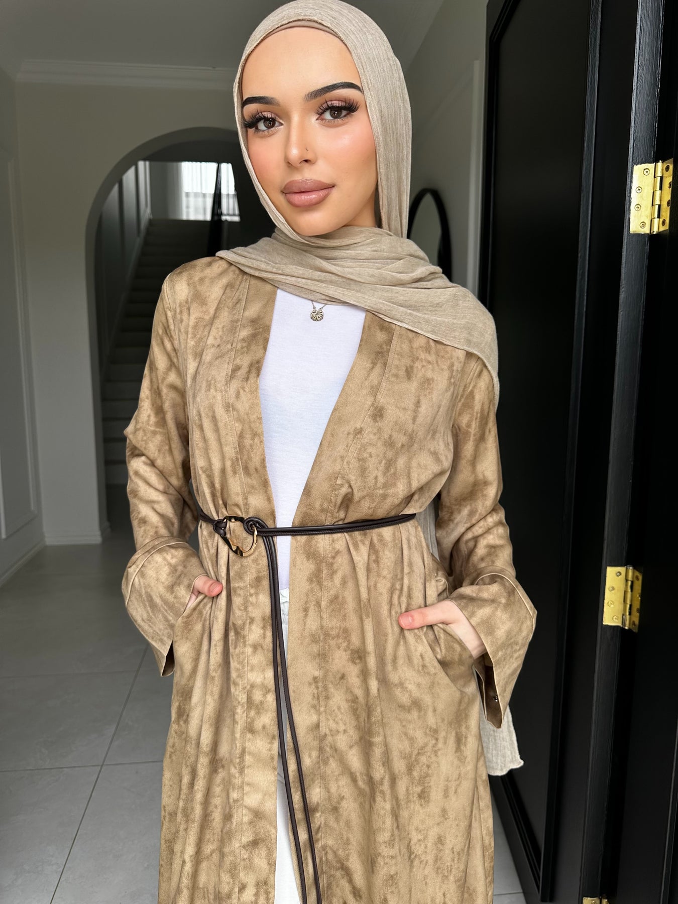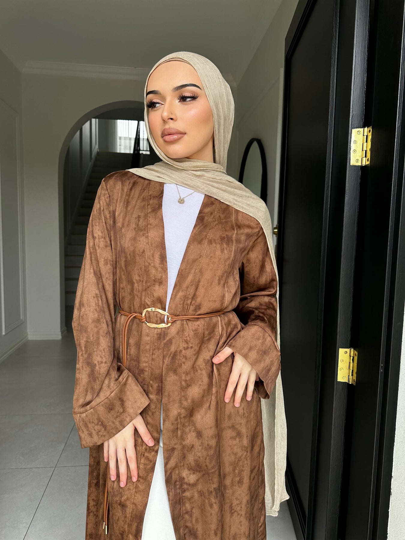 Made from a luxe suede-feel fabric that delivers a smooth, buttery texture and an elevated look—perfect for layering